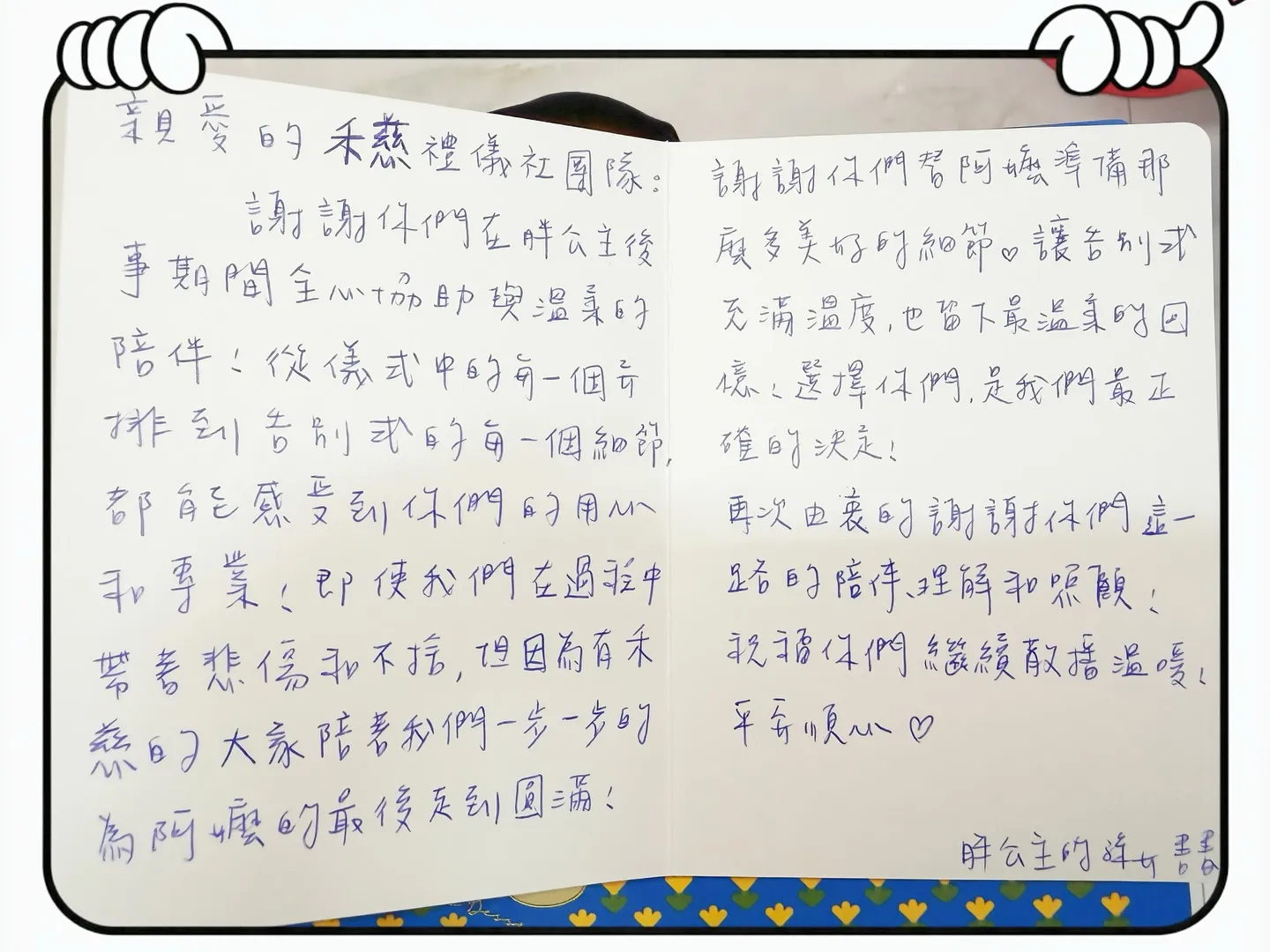 親愛的禾慈禮儀社團隊: